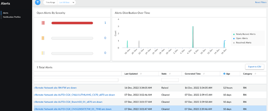 You can view new cleared alerts using the prisma_sase_external_alerts_current resource.